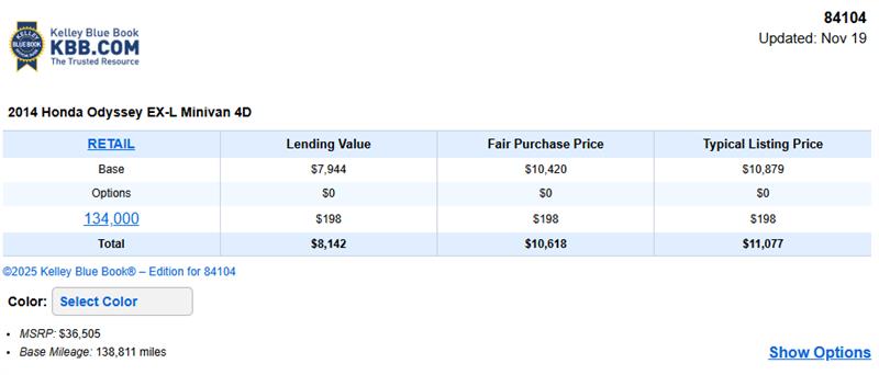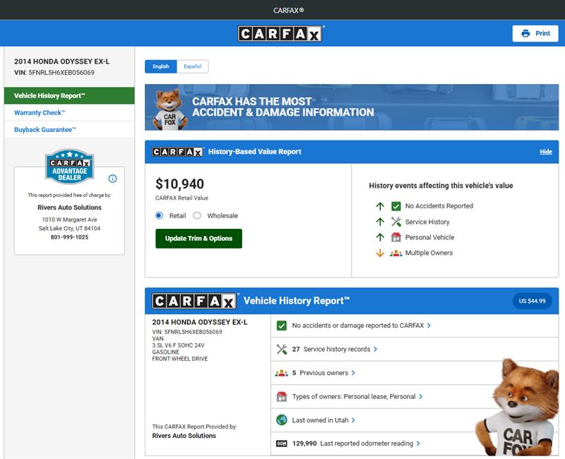 2014 HONDA ODYSSEY EX-L with powerful 3.5L V6 SOHC 24-VALVE I-VTEC engine and driven only 134904 miles! Fully loaded and much more! CARFAX CERTIFIED**FINANCING AVAILABLE** Contact our Sales at 801-999-1025