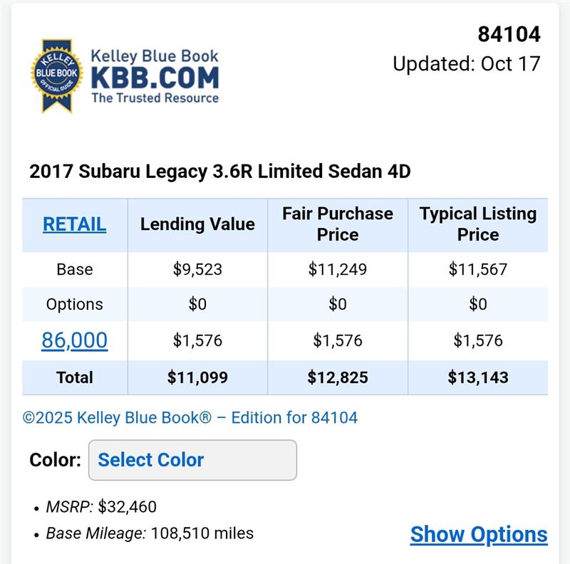 2017 SUBARU LEGACY LIMITED with powerful 3.6L DOHC 24 VALVE 6-CYLINDER BOXER -INC DUAL engine and driven only 86193 miles! Fully loaded and much more! CARFAX CERTIFIED**FINANCING AVAILABLE** Contact our Sales at 801-999-1025